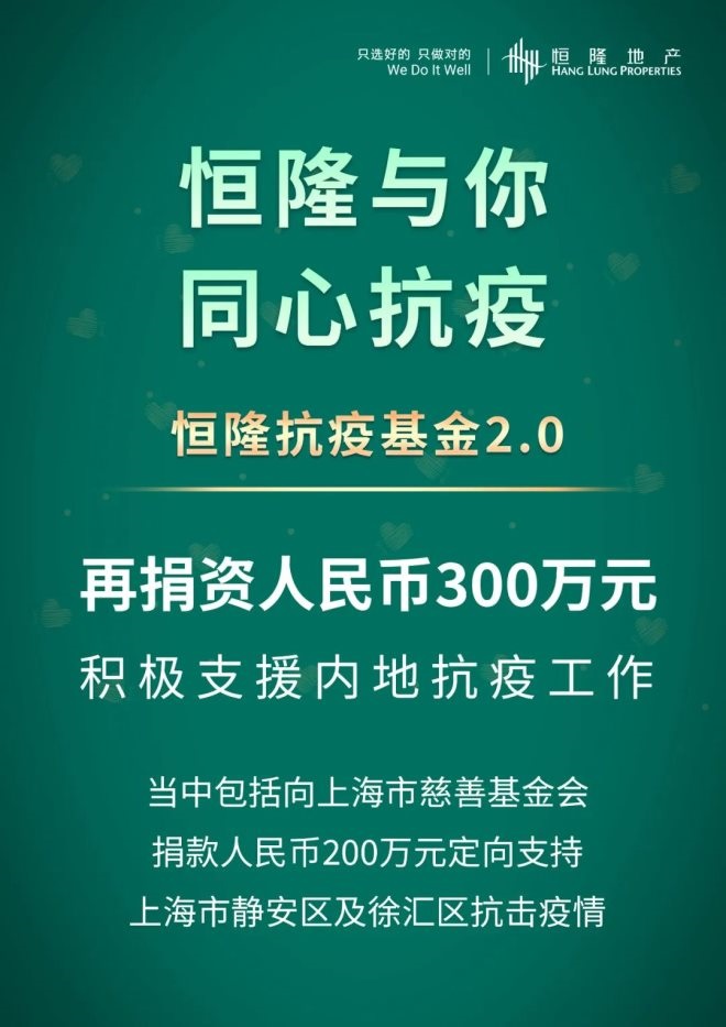 4月4日,恒隆地產(chǎn)官方微信宣布“恒隆抗疫基金2.0”再捐資人民幣300萬元,定向支援內(nèi)地抗疫工作。