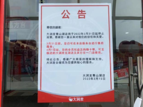 聯(lián)商快訊:3月31日,大潤(rùn)發(fā)南昌青山湖店、贛州張家圍店雙雙停止運(yùn)營(yíng)。
