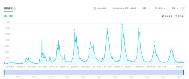 從上圖百度搜索指數(shù)能明顯看到,2017-2018年是小龍蝦熱度的高潮期,2019之后持續(xù)下降,甚至低于2015年小龍蝦“成名”之前的時(shí)候。