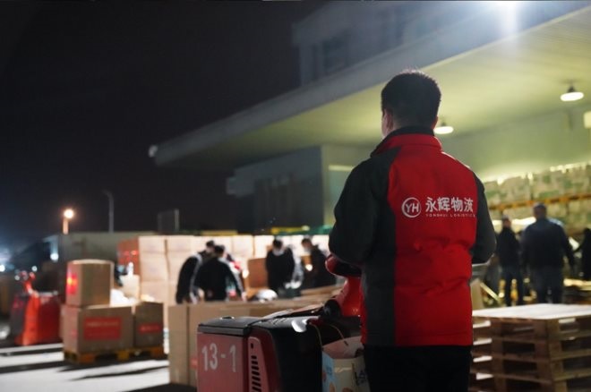 凌晨的永輝物流中心燈火通明