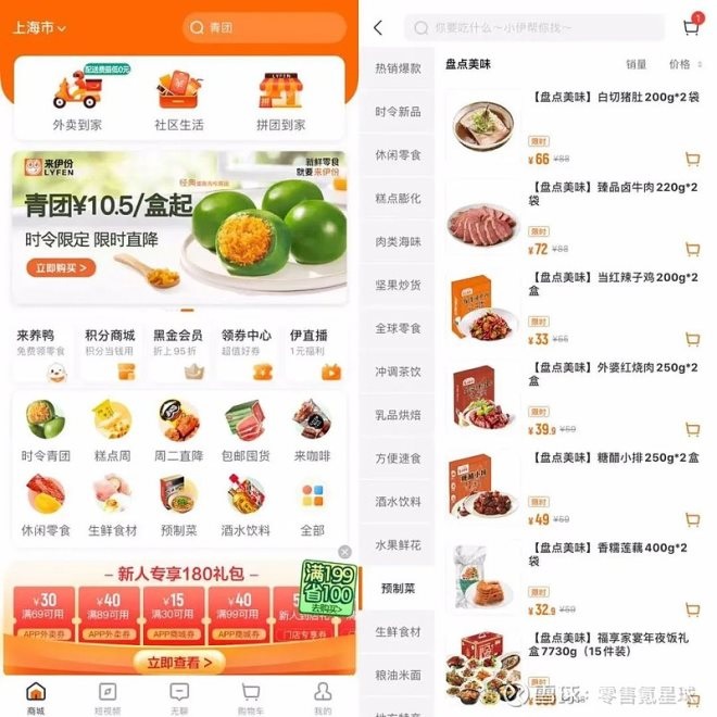 總部在上海的來伊份,也是通過「新供應(yīng)鏈」構(gòu)建,從一個休閑零食行業(yè)頭部品牌,向一個社區(qū)生活服務(wù)生態(tài)平臺品牌演變。通過來伊份App,消費(fèi)者可以實(shí)現(xiàn)包括零食購買、外賣到家、社區(qū)團(tuán)購、跨境電商、甚至預(yù)制菜和水果等多元產(chǎn)品和服務(wù)。