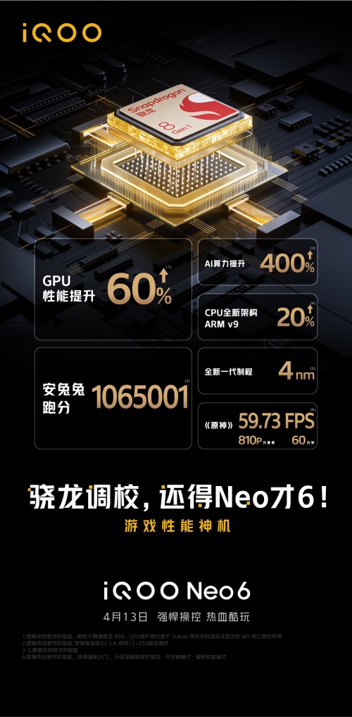 iQOO手機(jī)官宣iQOO Neo6將于4月13日發(fā)布