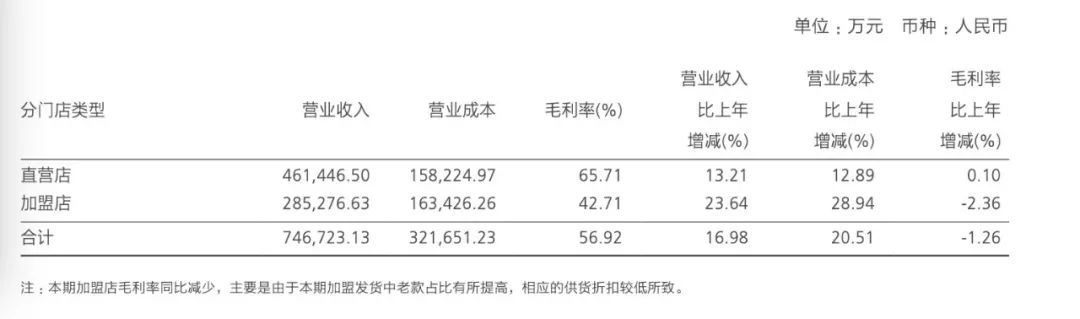 財(cái)報(bào)中直營店與加盟店的毛利也呈現(xiàn)出疲態(tài)。2021年,太平鳥直營店毛利同比增加0.1%,加盟店毛利則下降了2.36%。