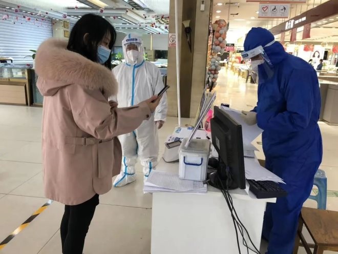 4月4日上午,在良茂凱悅大廳,為減少人員交叉感染,顧客須佩戴口罩,并配合工作人員進(jìn)行測溫、登記,使用微信或支付寶掃一碼通并出示后確?刹榭煽兀拍茼樌M(jìn)店。做為商場防疫的首道關(guān)口,安保人員更是全副武裝,一絲不茍地完成著第一道防疫關(guān)卡。按要求測完體溫、掃完一碼通,登記好后才能進(jìn)入商場。