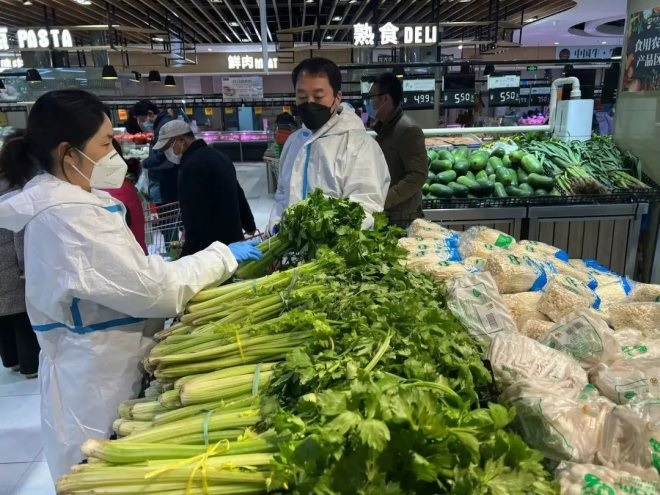 在超市我們看到,從顧客進(jìn)入賣場到購物全過程,疫情防控工作嚴(yán)密,超市內(nèi)的各種蔬菜、瓜果、肉類等產(chǎn)品種類豐富且十分新鮮,供應(yīng)上非常充足,價(jià)格并沒有因?yàn)橐咔橛写蠓日{(diào)整,前來采購的顧客秩序井然。