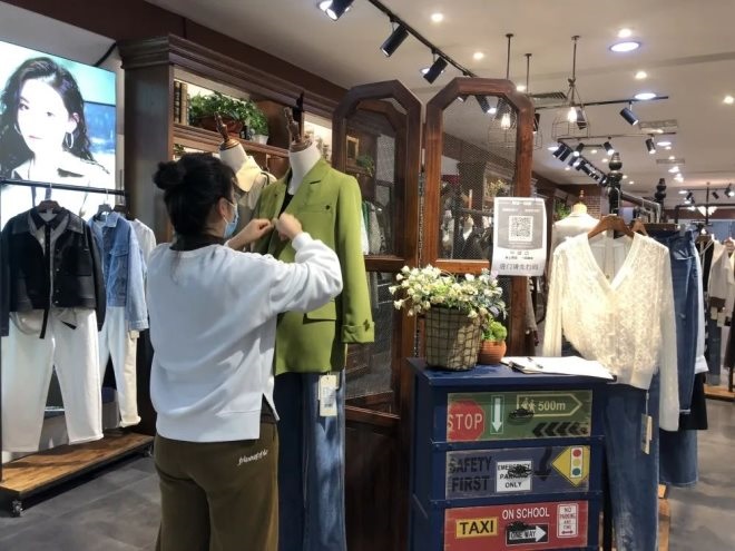 一位工作人員介紹:"現(xiàn)在人流量不是很大,但也一直有顧客來,店里的消殺非常密集,顧客、還有我們都佩戴專用的口罩,防控的比較好,所以還是很有安全感的!"