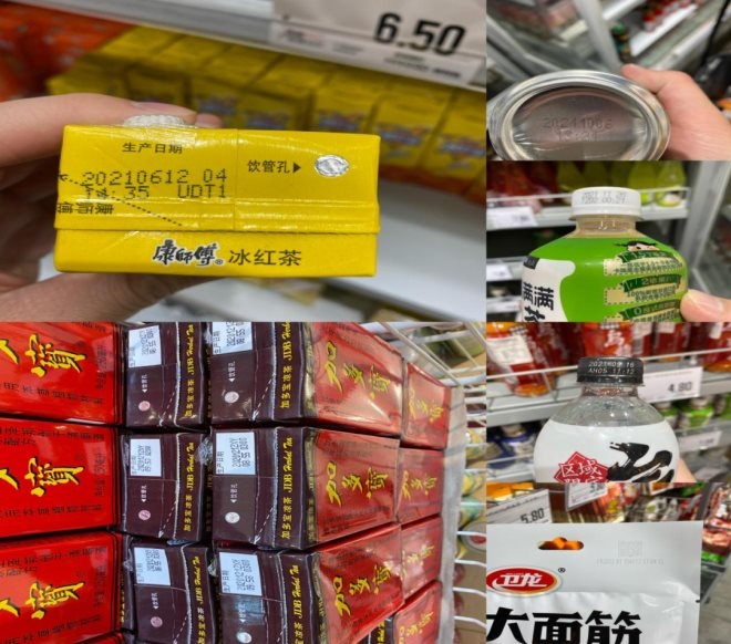 以康師傅冰紅茶為例,保質(zhì)期12個(gè)月的產(chǎn)品,在店內(nèi)售賣的價(jià)格為1.2元的產(chǎn)品包裝上,生產(chǎn)日期為2021年6月12日,意味著僅剩下兩個(gè)月出頭的保質(zhì)期。另一款元?dú)馍趾{}菠蘿味蘇打氣泡水,保質(zhì)期為9個(gè)月,生產(chǎn)日期為2021年9月16日,同樣僅剩下兩個(gè)月的保質(zhì)期。