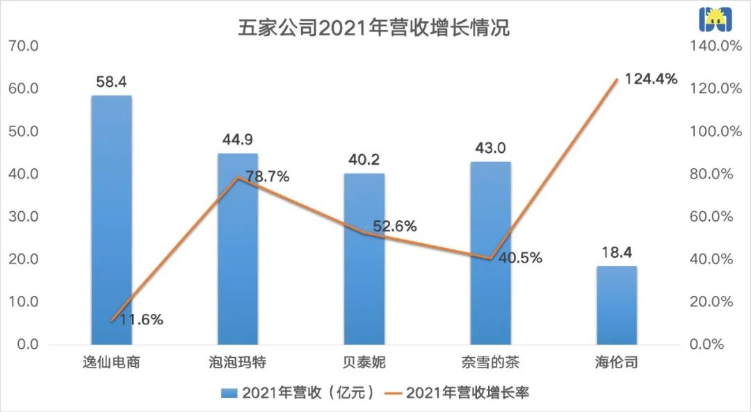 五家公司中,除了成立時間最晚的海倫司之外,其他幾家的營收都在50億關(guān)卡上下。