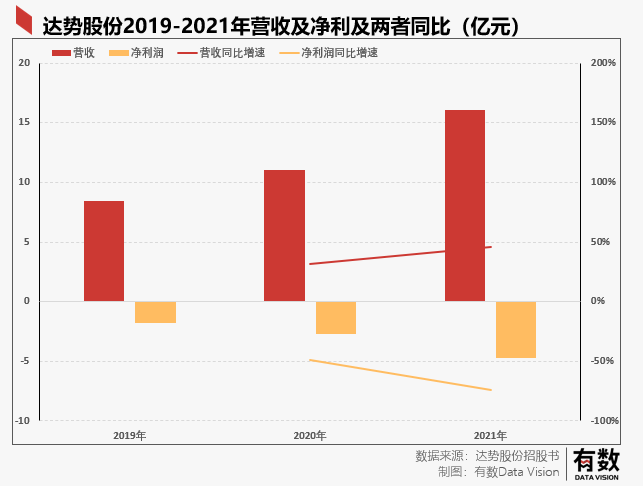 首先是大規(guī)模虧損,根據(jù)招股書顯示,達(dá)勢股份2019-2021年三年?duì)I收分別為8.37億,11.04億,16.11億,但凈利潤分別為-1.82億,-2.74億,-4.71億,虧損擴(kuò)大幅度遠(yuǎn)超營收增幅。