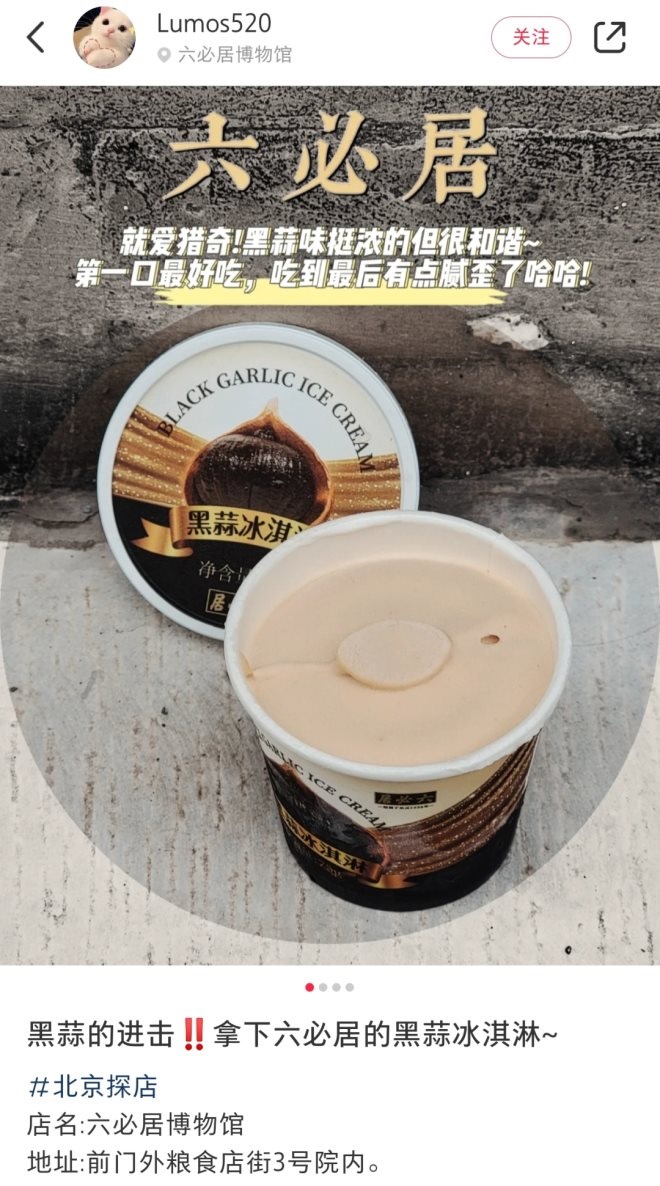 圖片來(lái)源:小紅書(shū)用戶@Lumos520六必居黑蒜冰淇淋