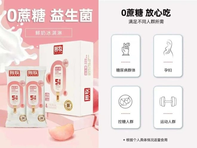 冰淇淋品牌田牧則將“輕享健康冰淇淋”作為主線,推出0蔗糖鮮奶、低脂不胖、益生菌鮮奶等多個(gè)系列,0蔗糖主要面向糖尿病群體、孕婦、控糖人群和運(yùn)動(dòng)人群,還針對(duì)推出了更小規(guī)格的兒童系列。