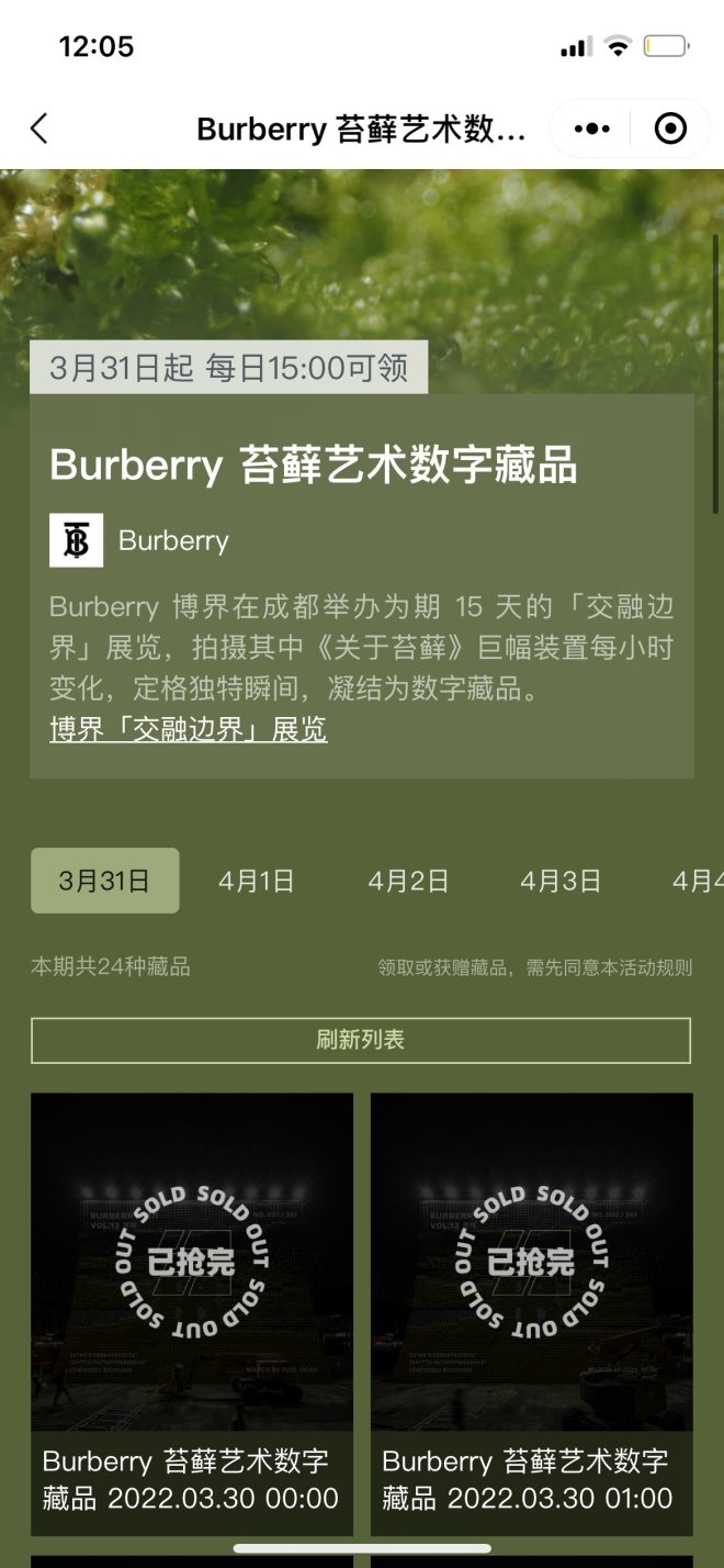 “城會玩”,Burberry發(fā)布苔蘚藝術(shù)數(shù)字藏品