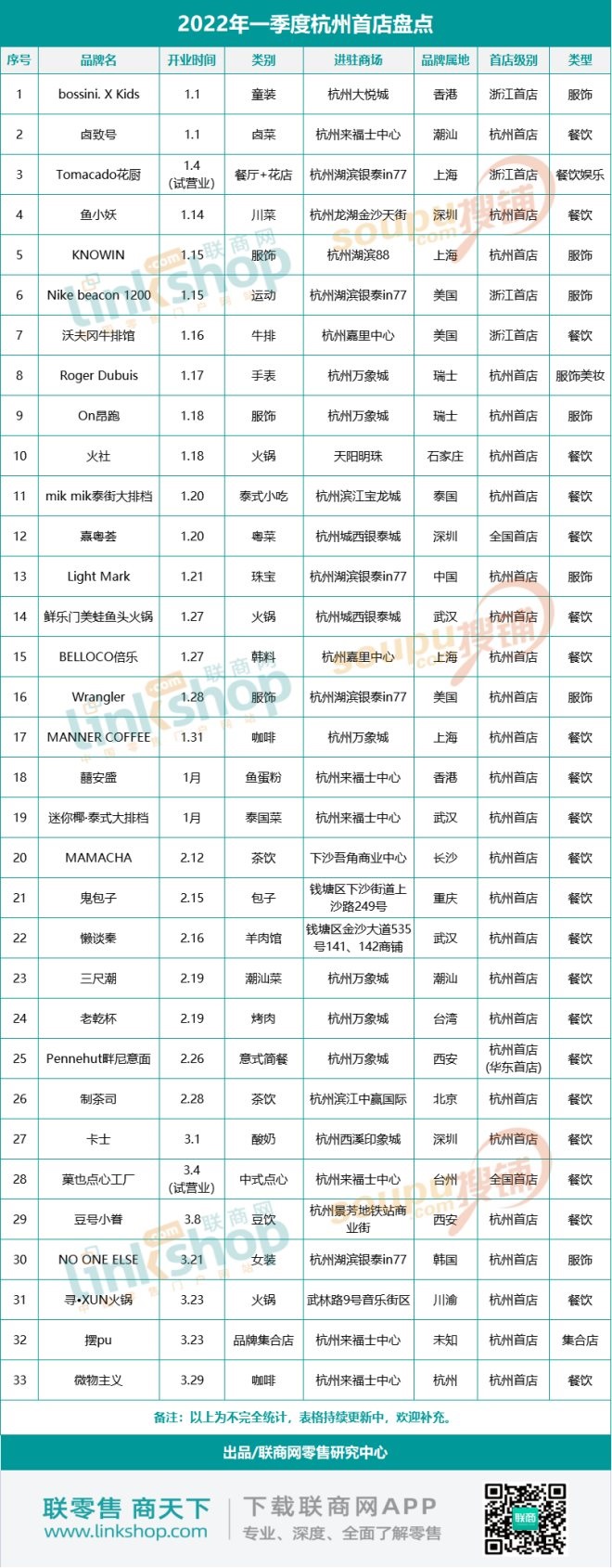 一季度杭州引入了33家首店,餐飲服飾是重點