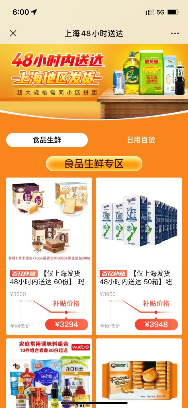 為助力解決上海疫情保供“最后100米”問題,4月7日,拼多多平臺(tái)上線“48小時(shí)保供套餐”,通過集采集配方式,以有限運(yùn)力覆蓋盡可能多消費(fèi)者的基本物資需求。