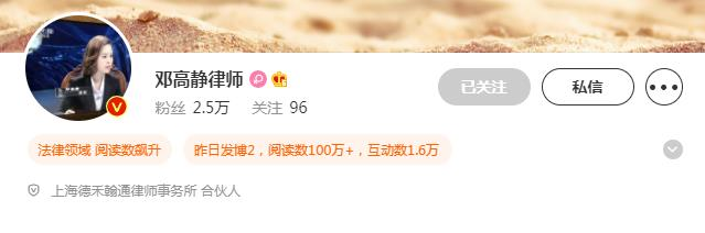 不過(guò),此事并未隨著寶潔道歉劃上句號(hào)。一方面,部分網(wǎng)友仍抵制寶潔旗下品牌;另一方面,3月26日,微博賬號(hào)“鄧高靜律師”發(fā)布微博稱(chēng),“寶潔的文章涉嫌違反《廣告法》,請(qǐng)廣州市場(chǎng)監(jiān)管局依法對(duì)廣州寶潔有限公司處以罰款”。不過(guò),青眼今日發(fā)現(xiàn)這條微博已被刪除!班嚫哽o律師”微博賬號(hào)的認(rèn)證為“上海德禾翰通律師事務(wù)所合伙人”。