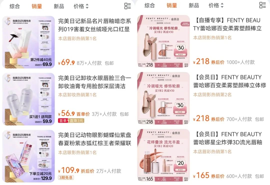 完美日記與Fenty Beauty銷(xiāo)量對(duì)比