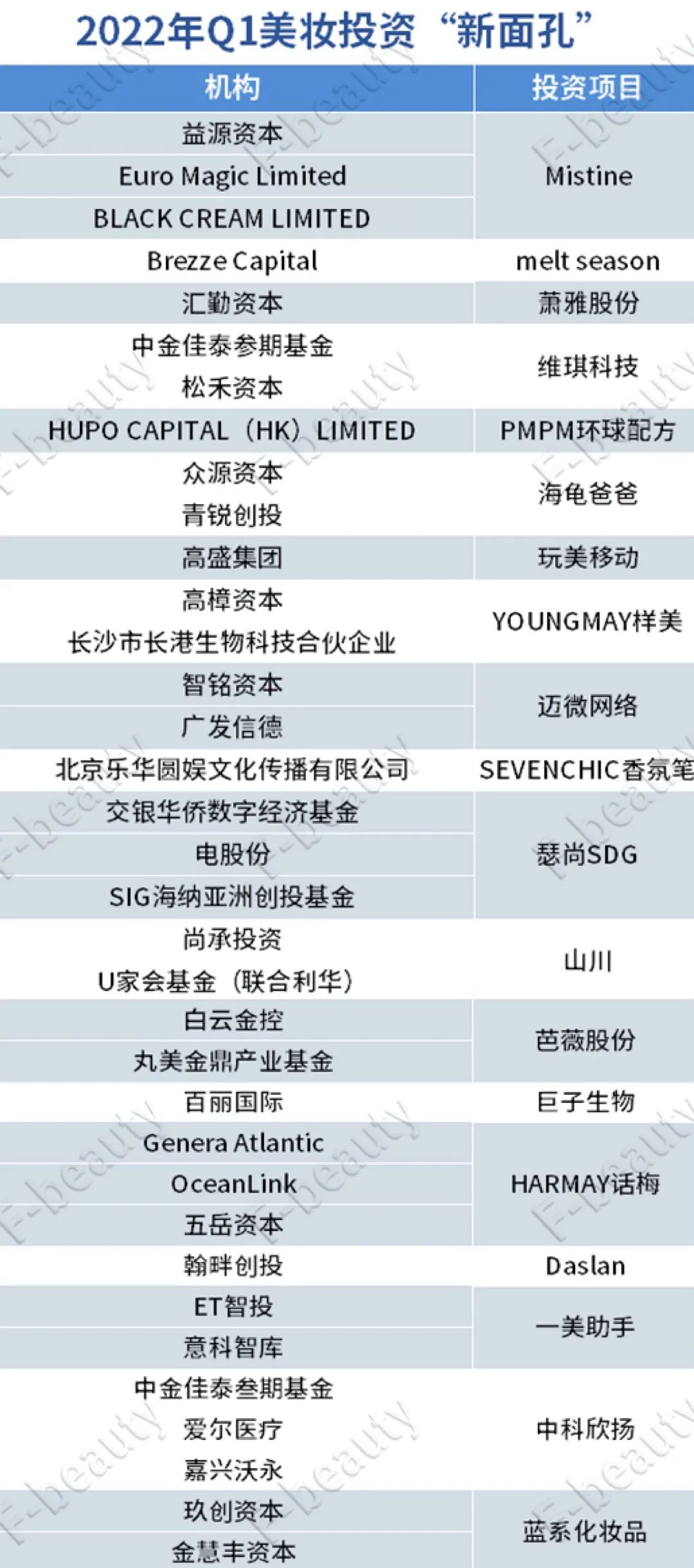 《未來跡Future Beauty》還發(fā)現(xiàn),今年一季度,進(jìn)入美妝圈的投資者,不僅有不少新面孔,其中有很多機(jī)構(gòu)還大有來頭。