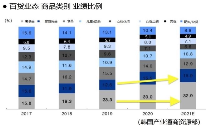 這種綜合文化空間概念的戰(zhàn)略是受新冠疫情影響下禁止海外旅行狀態(tài)中衍生出來的,其具備反射作用和消費能力的MZ世代的flex文化(即使產(chǎn)品價格昂貴,但為了自身滿足感從而產(chǎn)生消費)所帶來的奢華消費(包括但不限于奢侈品、家庭用品和新鮮食品等全行業(yè)高檔商品),該消費行為帶動了百貨店的成長,擺脫了2021年持續(xù)發(fā)生新型冠狀病毒所產(chǎn)生的營銷,使其銷售額仍增長了17%,并持續(xù)拓展4家大型新店,打破了近幾年來消費能力低增長的趨勢。