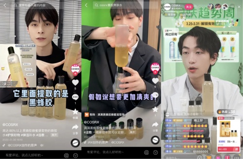 #護膚品類趨勢周#話題反響熱烈,吸引了眾多商家參與,“來抖音解鎖春季有效護膚”的聲量實現(xiàn)多維擴散。其中,COSRX品牌在活動期間聚焦產(chǎn)品核心賣點,以多支優(yōu)質(zhì)短視頻內(nèi)容鎖定用戶的關注力,激發(fā)用戶的興趣,協(xié)助品牌自播間精準引流獲客。