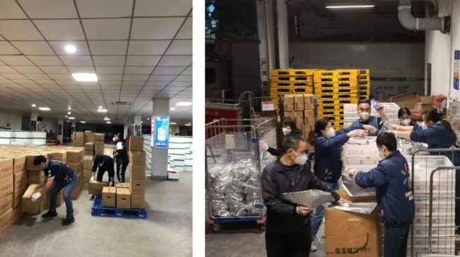 ▲松匯路店同事正在配送物資。