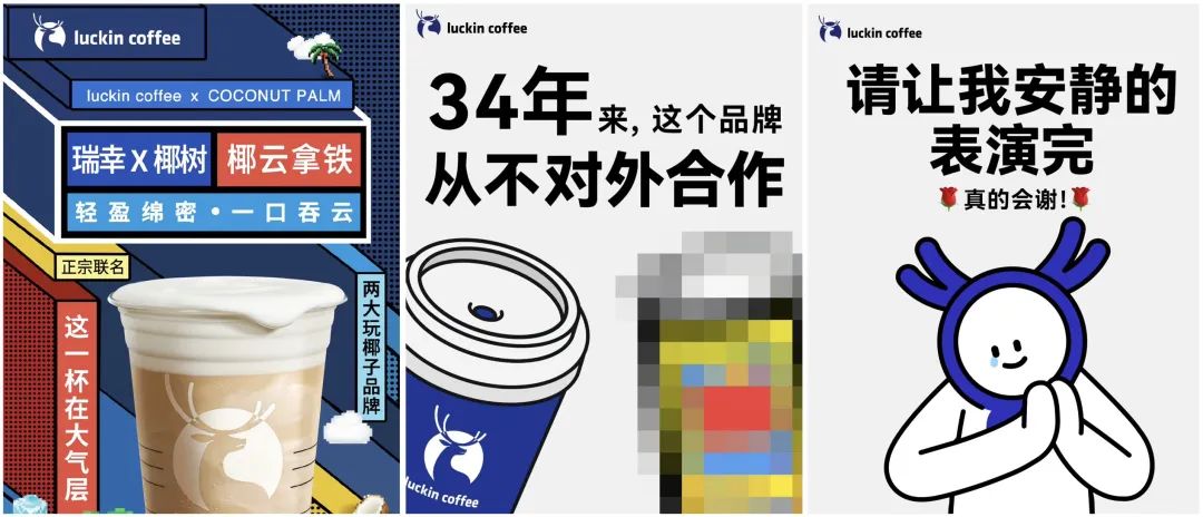 事實(shí)上,早在4月8日,瑞幸就開(kāi)始為這款新品造勢(shì)。盡管海報(bào)上給聯(lián)名品牌打了馬賽克,但網(wǎng)友們直呼“這馬賽克打了個(gè)寂寞”。被網(wǎng)友“揭穿”后,瑞幸微博又發(fā)表海報(bào)呼吁“請(qǐng)讓我安靜地表演完,[玫瑰]真的會(huì)謝![玫瑰]”。