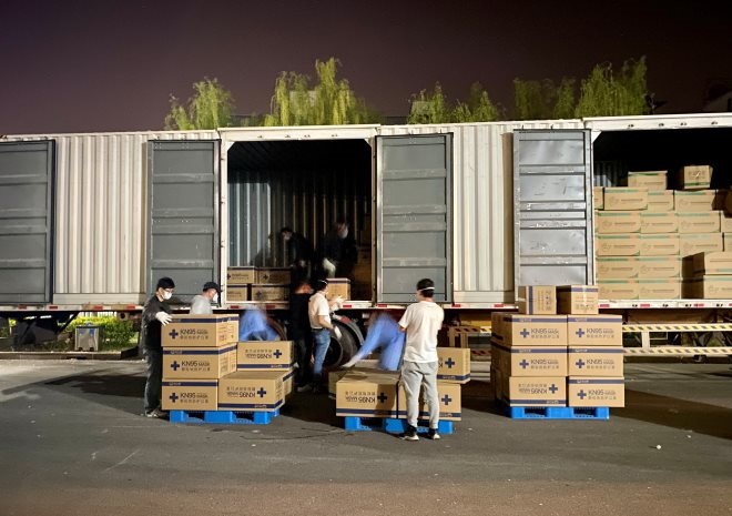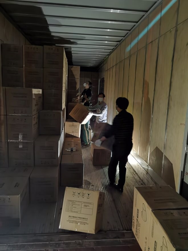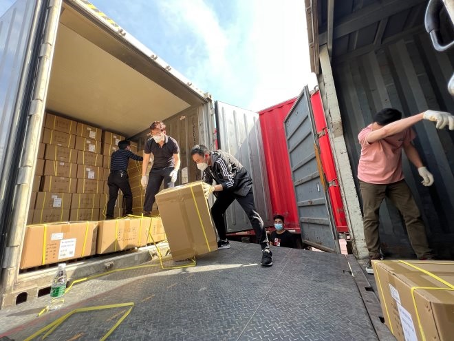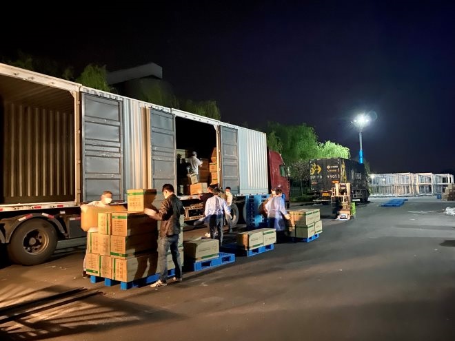 本次任務的難點在于來自外區(qū)的集卡內(nèi)成箱物資必須搬運至負責市內(nèi)分流的另一集卡內(nèi),由于叉車駕駛員短缺,大部分需要車到車的人工搬運;而市內(nèi)醫(yī)療檢測和防護用品需求猛增,導致倉庫原有工作人員晝夜奮戰(zhàn)仍嚴重不足。