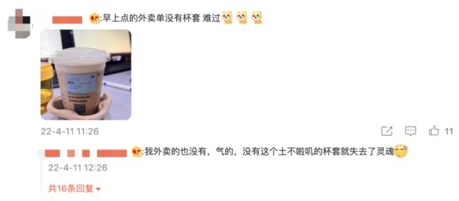 有消費(fèi)者在拿到帶有土味杯套的椰云拿鐵時(shí),紛紛擺出了與椰樹(shù)椰汁代言人一致的姿勢(shì);不少網(wǎng)友更是對(duì)外賣下單沒(méi)法獲得限定杯套感到遺憾,并表示“沒(méi)有了土味杯套,就失去了靈魂!