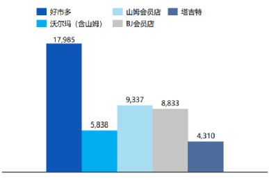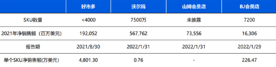 第一,Costco單店坪效遠(yuǎn)高于競(jìng)爭(zhēng)對(duì)手。