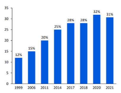 勞動(dòng)力成本較低,工作時(shí)間更短,員工流失率低,進(jìn)一步降低了人力成本。截至2021年底,公司在全球雇傭了288,000名員工。保持至少50%的員工為全職員工,員工保留率高于行業(yè),2021年美國(guó)地區(qū)工作至少一年的員工比例超過(guò)了90%。相比其他競(jìng)爭(zhēng)對(duì)手,人工成本低4%以上。