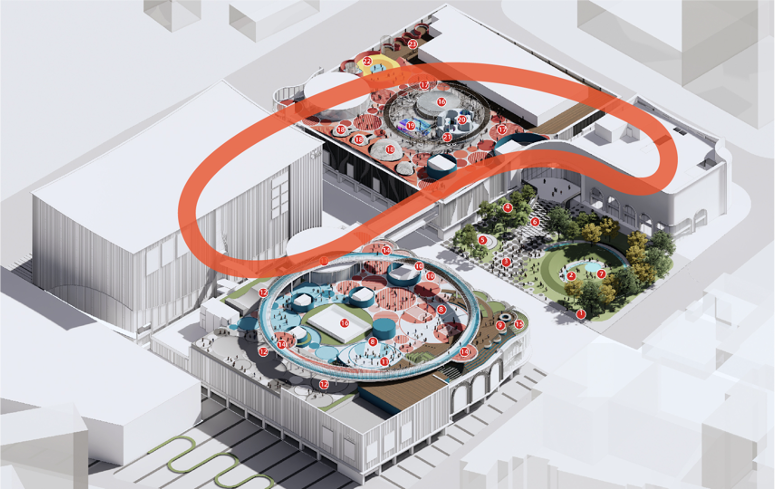 首先,顛覆原有主動(dòng)線,使四棟建筑渾然一體。