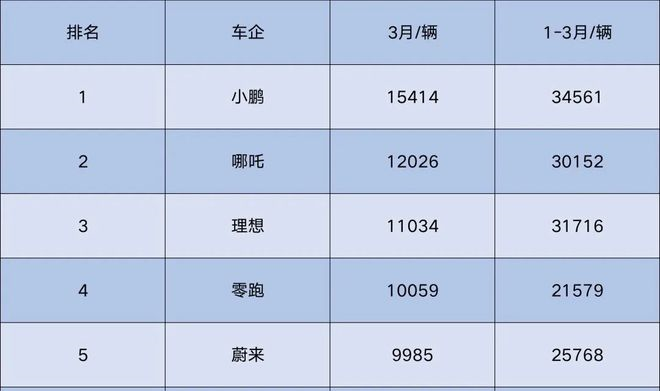 今年3月,蔚來汽車交付量達(dá)到了9985臺,增速為37.6%,不僅今年以來交付量連續(xù)三個月不過萬,而且已經(jīng)被首次破萬的零跑汽車超過,成為國產(chǎn)造車新勢力第五名。