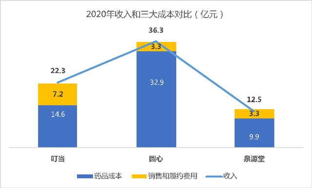 三家業(yè)務(wù)都以藥品零售為主,收入接近,但由于模式不同,銷售的藥品結(jié)構(gòu)不同,拉開了毛利率差距。