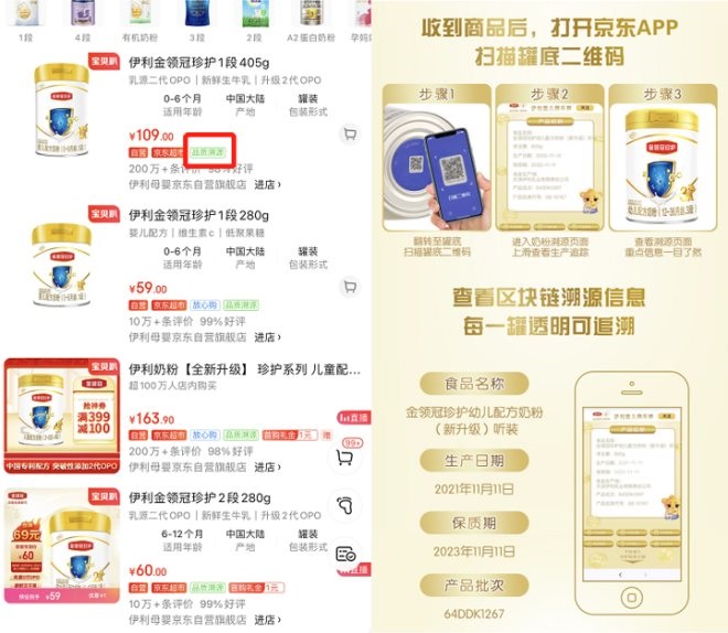 京東超市“寶貝趴”活動期間,一名新手媽媽表示,“這兩天剛在京東超市買了飛鶴奶粉,收到貨就掃碼認(rèn)證過了,是正品,奶源地、加工、倉儲等等信息都特別清楚,買得非常放心!蓖ㄟ^“奶粉品質(zhì)溯源”服務(wù),媽媽們在選購奶粉時更省心。