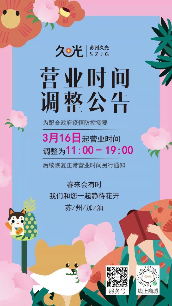 8、久光百貨:自4月12日起暫停營業(yè),恢復(fù)時(shí)間另行通知。保留餐飲外賣及超市等正常營業(yè)。超市營業(yè)時(shí)間:11:00-19:00。