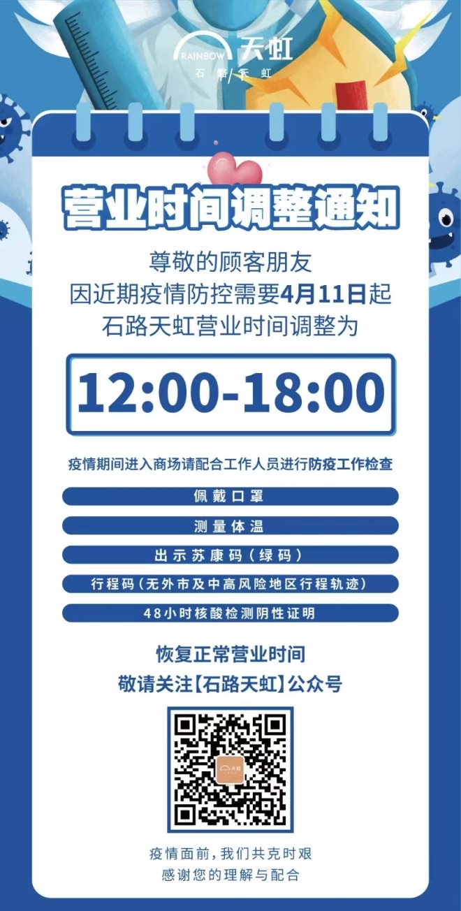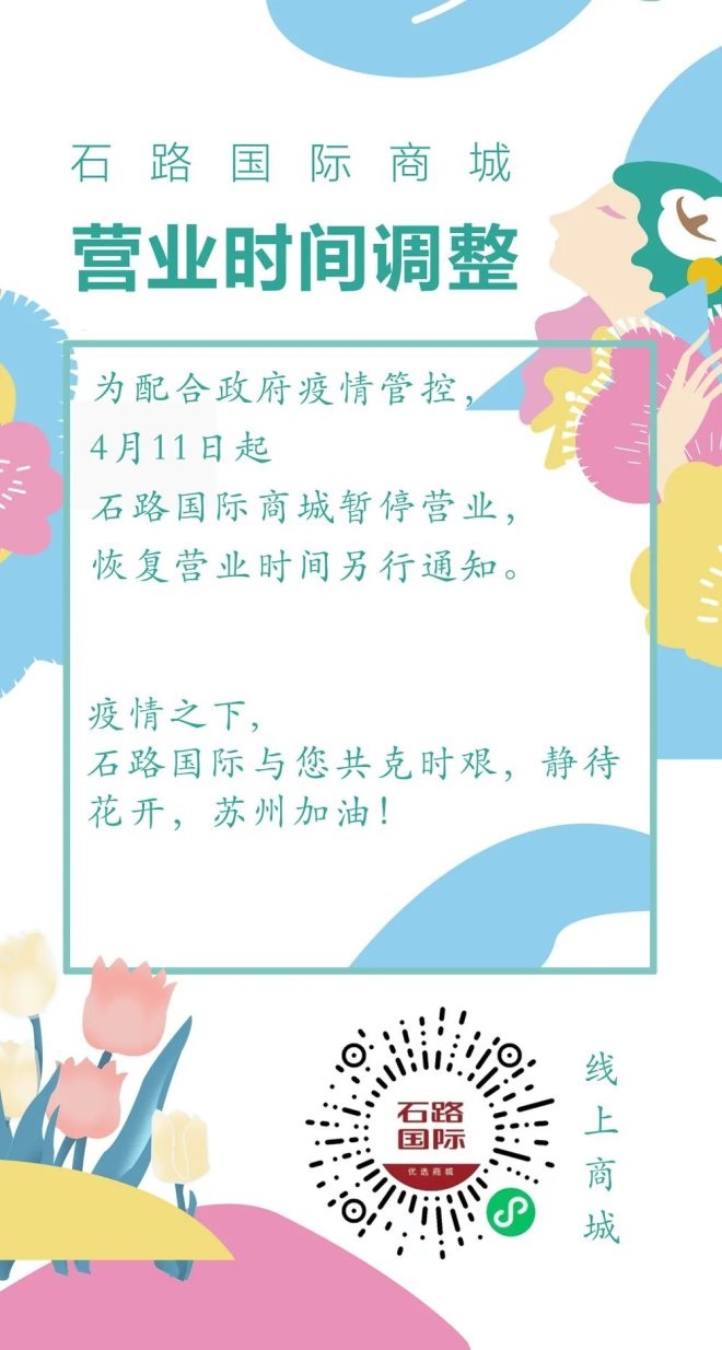 17、石路國際商城:自4月11日起暫停營業(yè),恢復(fù)時(shí)間另行通知。