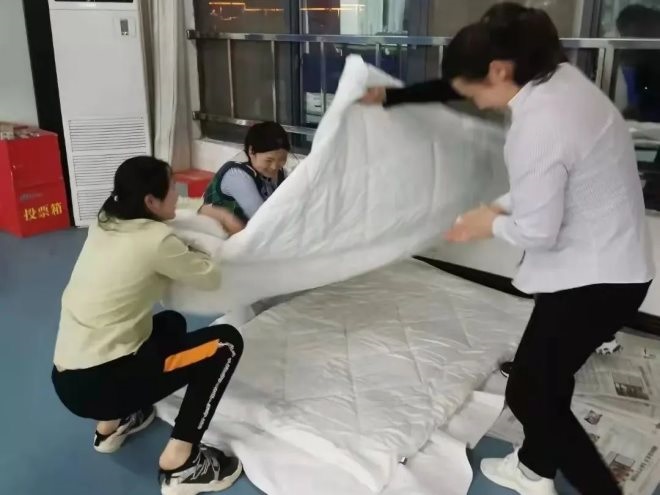 無論是超市員工、配送人員、支援人員還是公司領(lǐng)導(dǎo)們,他們都是從早上五點(diǎn)忙碌到凌晨兩三點(diǎn),他們身上似乎有使不完的勁兒,面對眾多的訂單,他們絲毫不敢懈!在賣場、辦公室、在車上,只要是他們工作的陣地,他們都能找到簡單的鋪蓋,來作為他們臨時(shí)休憩的場地,疫情封控持續(xù)了多久,他們就這樣短暫的休息了多少次。