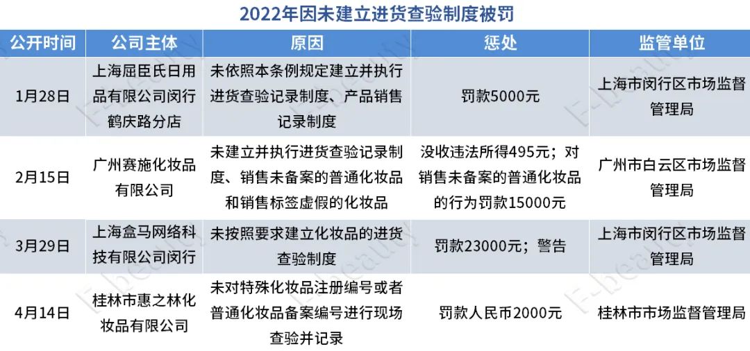 3月29日,上海盒馬網(wǎng)絡(luò)科技有限公司閔行分公司因店內(nèi)售賣的化妝品未按照要求建立化妝品的進(jìn)貨查驗(yàn)制度,被警告并處以罰款2.3萬元。