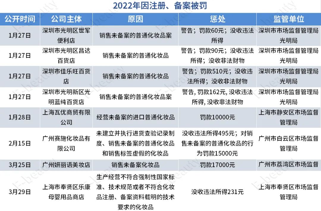 2022年因注冊、備案被罰統(tǒng)計(jì)