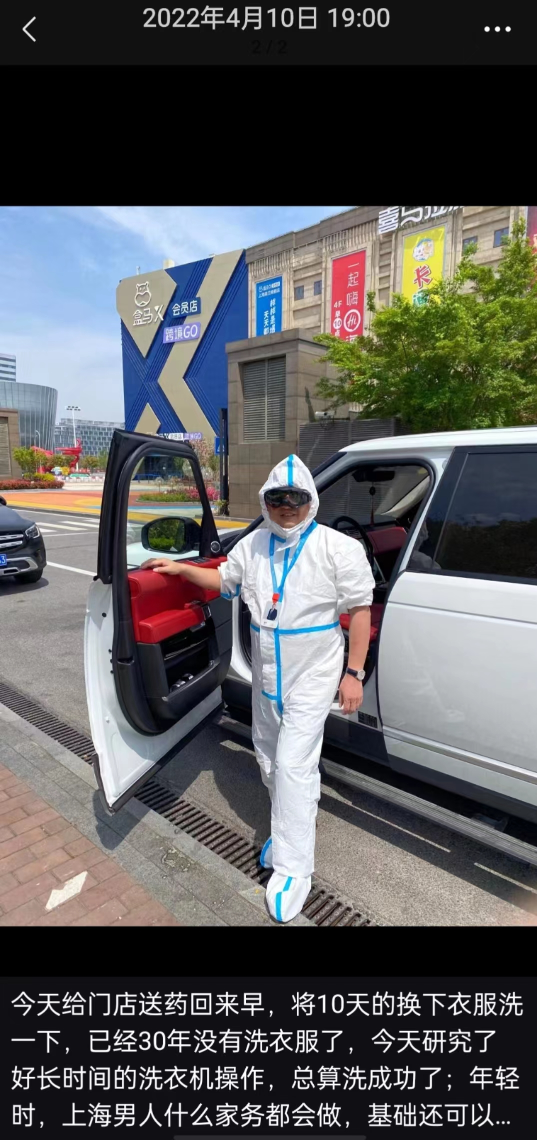 4月初的一天,一張開(kāi)著SUV,白發(fā)蒼顏,拎著飲料和卷紙的送貨照被人拍了下來(lái),在七寶會(huì)員店附近的業(yè)主群流傳,這個(gè)人正是老菜。