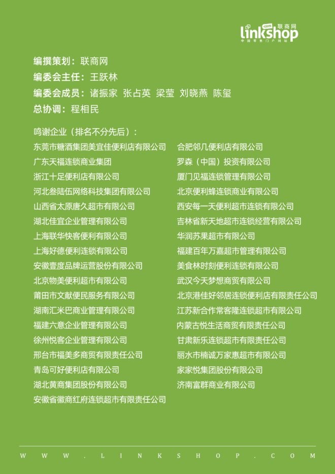 在此特別鳴謝美宜佳、天福、羅森(中國)、十足、鄰幾、見福、36524便利店、便利蜂、唐久、西安每一天、湖北佳宜、吉林新天地、快客、華潤蘇果、好德、萬嘉、安徽壹度、美食林時刻便利店、物美、Today便利店、莆田文獻、好鄰居、湖南匯米巴、福建六意、江蘇新合作?吐、徐州悅客、內(nèi)蒙古悅生活、福美多、甘肅新樂、青島可好、麗水楠誠萬家惠、湖北黃商、家家悅、安徽紅府、濟南富群等零售企業(yè)的大力支持。
