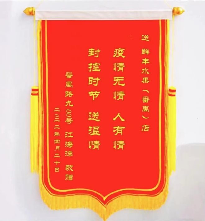 附近居民贈(zèng)送給鮮豐水果番禺路店的錦旗