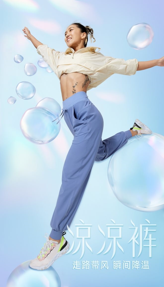 除了涼涼TEE,此次還推出了涼涼褲,同樣采用MAIA LAB涼感水循環(huán)科技,平滑纖維結(jié)構(gòu),吸收速干不粘人,穿上瞬間降溫。寬松褲型,包容各種腿型,垂墜質(zhì)感,拉長(zhǎng)比例,同時(shí)面料具備四面彈力,跑步不緊勒,約250g超輕重量讓你隨時(shí)走路帶風(fēng)、運(yùn)動(dòng)自如。