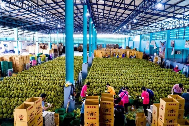 每到四月榴蓮旺季開始,這里的果園就會熱鬧非凡。果農們采用特殊的方式將樹上成熟的榴蓮小心采摘下來,并根據(jù)成熟度和質量分類裝框,再針對性進行殺菌、保鮮、堆碼、吹干,然后選果稱重、打包發(fā)酵、預冷調溫備運。從產區(qū)、品種、到采摘、加工包裝、運輸?shù)拳h(huán)節(jié),蘇寧易購家樂福層層嚴選把關,以確保消費者選購時恰是榴蓮的最佳賞味期。同時,蘇寧易購家樂福通過與供應商達成長期戰(zhàn)略合作,精簡流通環(huán)節(jié)、降低渠道成本,將新鮮、安全、實惠帶給消費者。