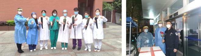 很多醫(yī)務工作者和志愿者收到來自月星的玫瑰花