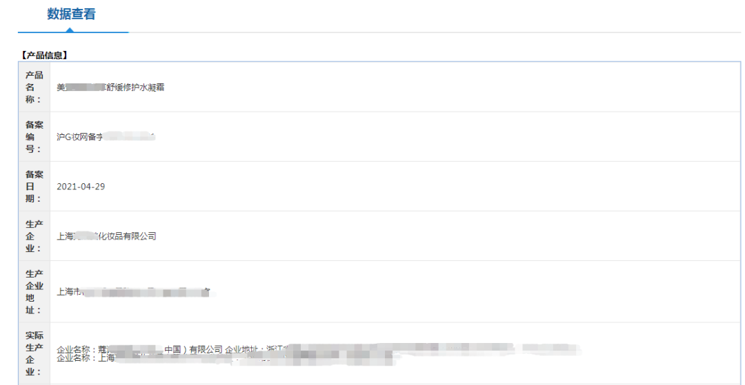 新舊產(chǎn)品備案信息對(duì)比,截自國(guó)家藥監(jiān)局國(guó)產(chǎn)普通化妝品備案平臺(tái)