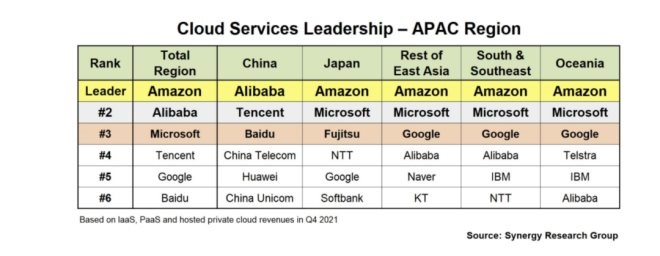 SRG研究集團(tuán)發(fā)布亞太地區(qū)云服務(wù)占比排名