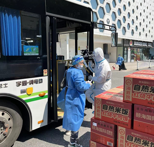 4月17日下午,配有“上海生活物資保障”通行證的一輛電動公交車從家樂福上海盈漕店出發(fā),車上滿載牛奶、雞蛋、蔬菜、油鹽醬醋、大米、方便面、自熱米飯等民生生活必須品,以及為小區(qū)老人、兒童等特殊人群準備的成人紙尿褲、兒童奶粉等生活用品,開到上海市青浦區(qū)西部一區(qū)、名人苑、崧子苑、盤龍浦等小區(qū)門口,為身處管控區(qū)的小區(qū)帶來新一輪補給。