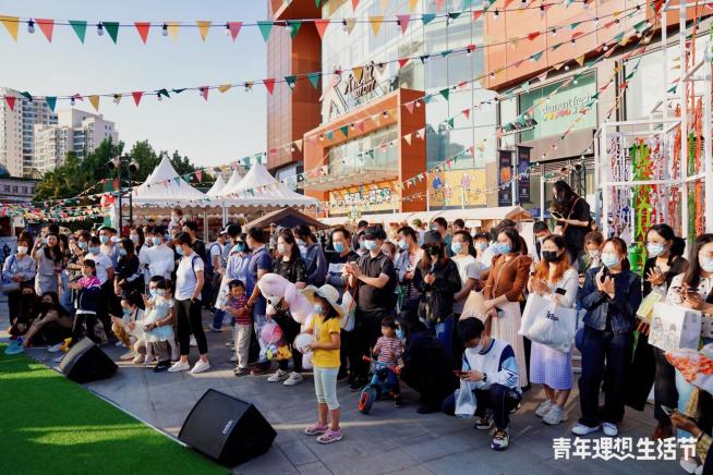 2020年,朝陽大悅城舉辦首屆「青年理想生活節(jié)」,以戶外市集點亮城市仲夏之夜;2021年國慶小長假,升級打造500㎡潮趣市集區(qū)和300㎡城市露營區(qū),與城市青年人連續(xù)七天躺平、開箱、干杯、一起浪。