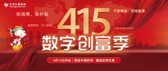 據(jù)chinagoods相關(guān)負(fù)責(zé)人介紹,415數(shù)字創(chuàng)富季,是平臺服務(wù)義烏市場經(jīng)營戶數(shù)字化貿(mào)易轉(zhuǎn)型的重要舉措。在貿(mào)易陷入疫情困局的當(dāng)下,為經(jīng)營戶創(chuàng)富、為采購商創(chuàng)富,更大地激發(fā)出義烏市場新活力,是chinagoods平臺的使命和責(zé)任,數(shù)字創(chuàng)富的號角將響徹義烏小商品城的現(xiàn)在和未來。