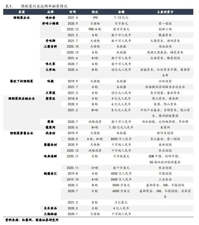 在行業(yè)快速擴(kuò)張中,嗅覺敏銳的資本紛紛入局。其中市場參與者有IDG、高瓴這樣的知名風(fēng)投機(jī)構(gòu),有美團(tuán)、盒馬鮮生這樣的外送平臺,海底撈下屬的餐飲食材B2B公司蜀海、王家渡這樣的餐飲集團(tuán),還有傳統(tǒng)商超永輝超市旗下食材解決方案服務(wù)商彩食鮮。